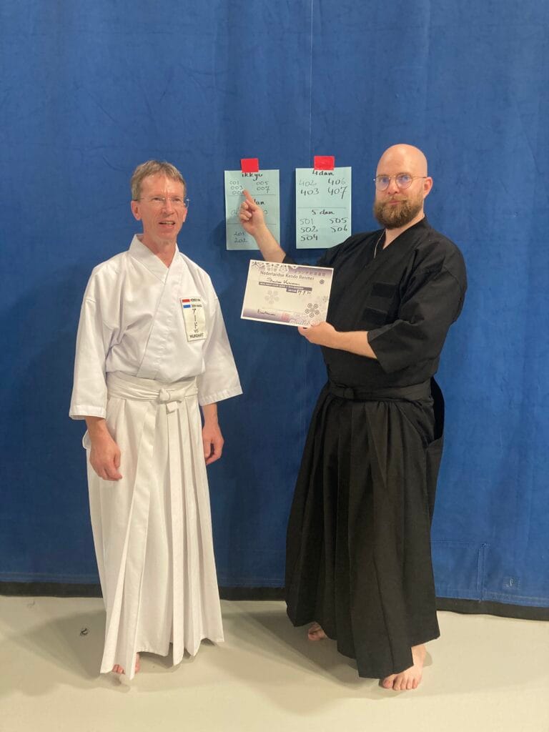Daaronder waren ook 17 leden van Kendo Kai Den Haag. Bij jodo slaagde Jeppe voor zijn shodan-examen, terwijl Sander bij iaido de ikkyu-graad behaalde. Het seminar omvatte ook de inmiddels traditionele iaido-teamwedstrijd, waarbij Alicia (mudan) een fighting spirit-prijs won. Felicitaties voor alledrie!